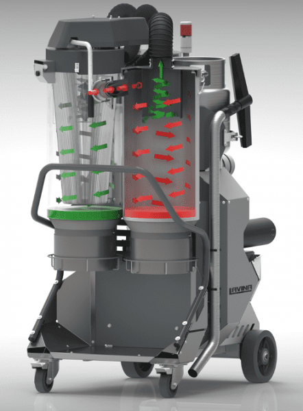 Lavina V32EU - это промышленный электрический пылесос очень высокой мощности, предназначенный для работы на более крупных проектах. Приводимый в действие двигателем мощностью 7,5 кВт, он идеально подходит для крупных проектов и в стандартной комплектации оснащен фильтром HEPA. Сменные мешки Longopack. Очень хороший пылесос для больших объемов мелкой бетонной пыли. Идеально подходит для подключения к шлифмашине Lavina. Пылесос оснащен мощным двигателем и двумя емкостями для выхода: одна для более мелкой фракции, а другая для более крупной. Дополнительно конструкция оснащена увеличенной активной поверхностью фильтров. Очень простой в использовании и удобный пылесос, который отлично работает с шлифовальными машинами при сборе бетонной пыли